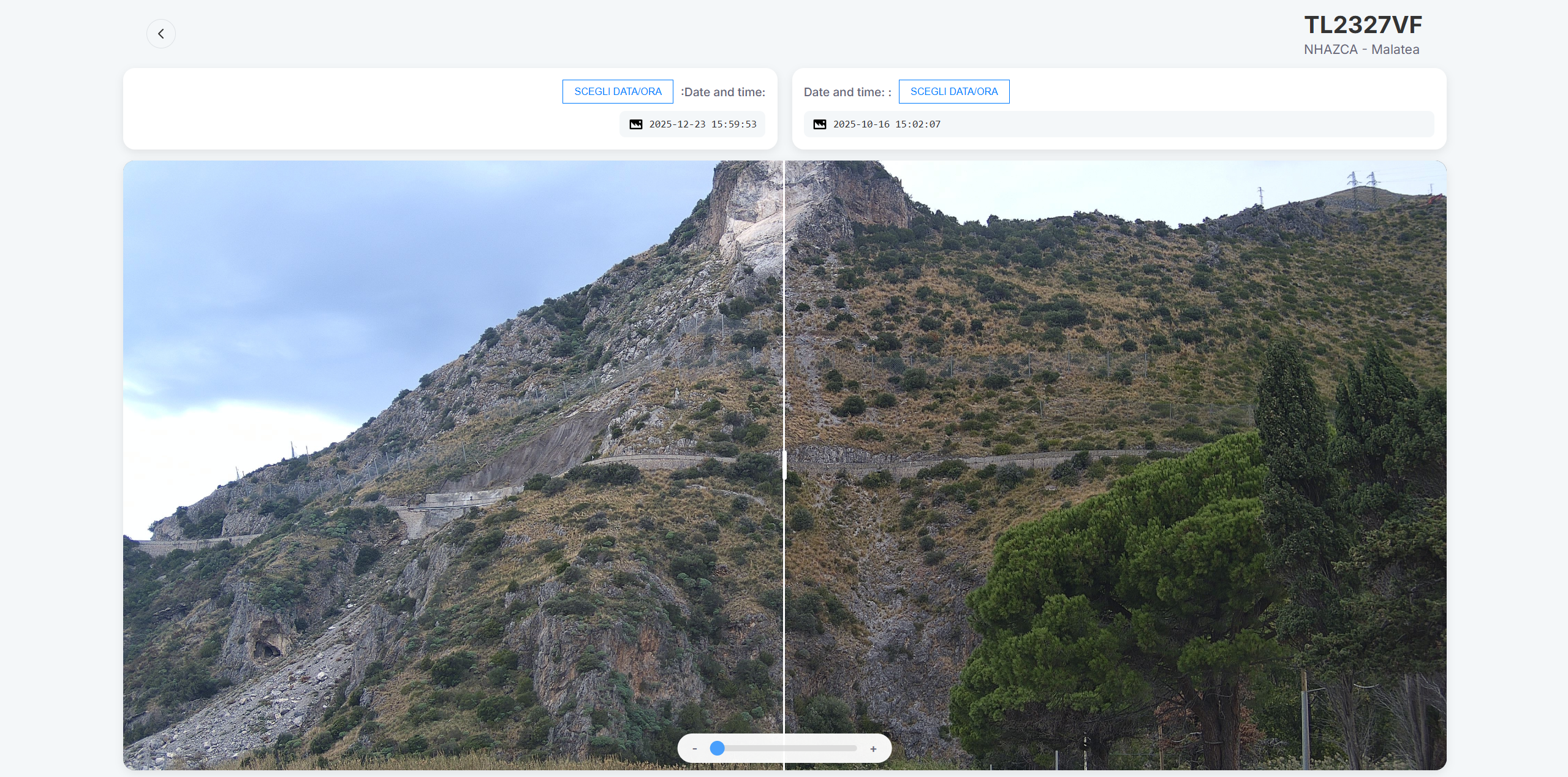 Our Split Function lets you compare two images simultaneously to spot differences and changes over time. This feature is essential for visual analysis, letting users precisely evaluate shifts in terrain, structures, or environmental conditions. Simply select two timestamps and view them side‑by‑side in a split view layout—ideal for presentations, reporting, or field verification.